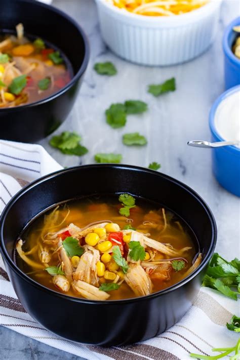Home » instant pot » instant pot chicken taco soup. And seriously, it's so darn easy and delicious. My other favorites are instant pot teriyaki chicken, instant pot applesauce, instant pot sweet potatoes. This chicken taco soup is perfect for a quick and easy weeknight meal. 1 carton pacific foods organic low sodium chicken broth 32 ounce. It's made with several pantry ingredients, including canned beans, corn, tomatoes and taco seasoning. Made with mostly pantry ingredients it is full of flavor, delicious and nutritious. You can make it low carb by skipping the beans, keep it dairy free by avoiding the sour cream and cheese and instead add avocado, and also make it as spicy or mild as you want. Add your favorite taco ingredients, dump in instant pot, serve! You can also switch out the chicken for turkey and adapt this recipe into a turkey taco soup dish if you fancy something different! I know you can use frozen chicken breast, but i like i mentioned above, this recipe for chicken taco soup is super weight watchers approved. I topped this soup with shredded cheddar and crushed tortilla chips. Loaded with juicy shreds of chicken, hearty black beans, and sweet corn, all swimming in a smoky, spiced broth, this chicken taco soup recipe is one you're going to want to keep close by through chilly weather and beyond.